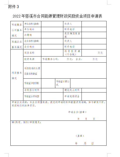 3.2022年慈溪市合同能源管理财政奖励资金项目申请表(附件3);