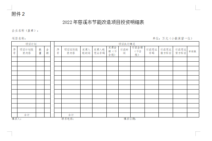 2.2022年慈溪市节能改造项目投资明细表(附件2);
