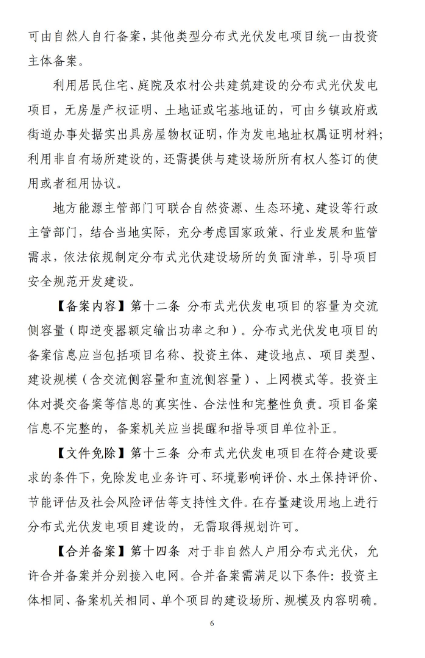 对于利用农业种植设施、畜禽养殖设施、林业种植培育设施、渔业养殖设施等设施建设的光伏发电项目,交流侧装机容量在6兆瓦及以上的归于集中式光伏电站管理,纳入全省集中式光伏项目建设计划后实施;交流侧装机容量低于6兆瓦的按照一般工商业分布式光伏项目管理。