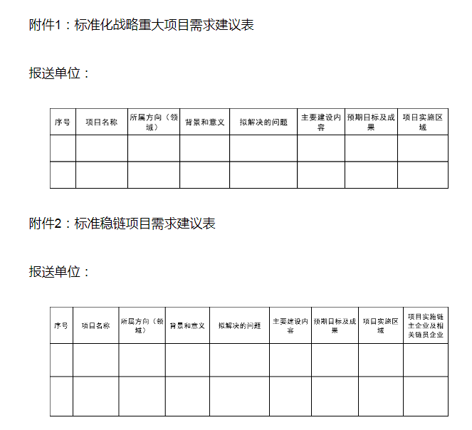 为深入实施标准化战略,贯彻落实《国家标准化发展纲要》,进一步做好2025年省级标准化战略重大项目和标准稳链项目建设,拟开展项目需求征集工作。现将有关事项通知如下: